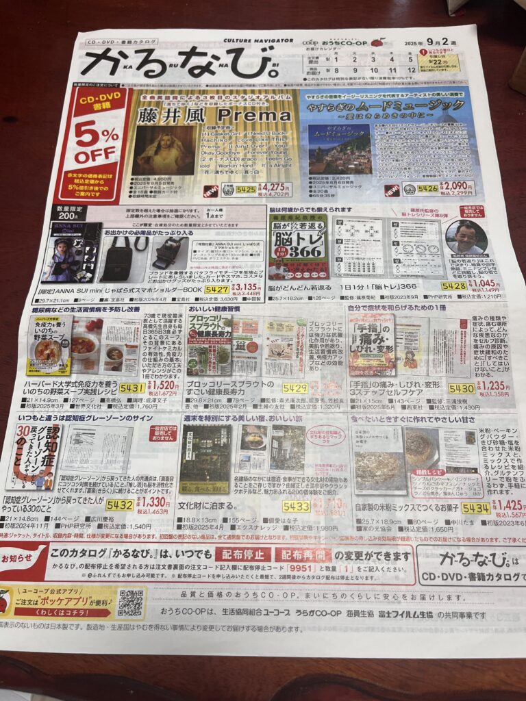 音楽や書籍が載った「かるなび」 というカタログも届きます📮